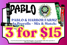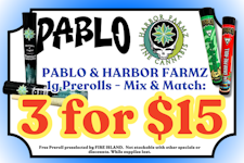 PABLO & HARBOR FARMZ 1g Prerolls: 3 for $15