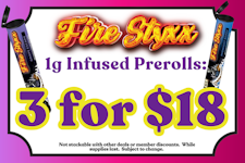 FIRE STYXX 1g Infused Prerolls: 3 for $18