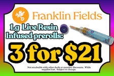 FRANKLIN FIELDS 1g Live Resin Infused Prerolls: 3 for $21