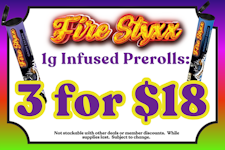 FIRE STYXX 1g Infused Prerolls: 3 for $18