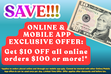 EXCLUSIVE ONLINE & MOBILE APP OFFER: Get $10 OFF all online orders of $100 or more!