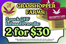 GRASSHOPPER FARMS 5 Pack Infused Prerolls: 2 for $30