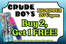 CRUDE BOYS "Big Ripper" 2g Disposable Vapes: Buy 2, Get 1 FREE
